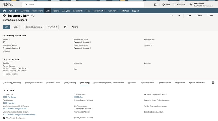 NetSuite Vendor Consignment Feature